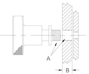 Shaft Size: 3/8″-16 UNC | Collet Size (A):  5/8″-18 UNF | B: (max thickness): 1/2″