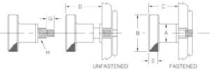 Shaft Size: 3/8″-16 UNC | A: 7/8″ | B: 2″ | C: 1″ 5/8 | D: 2″ 1/32 | E: 9/16″ | G: 3/8 ” | H: 5/8″-18 UNF